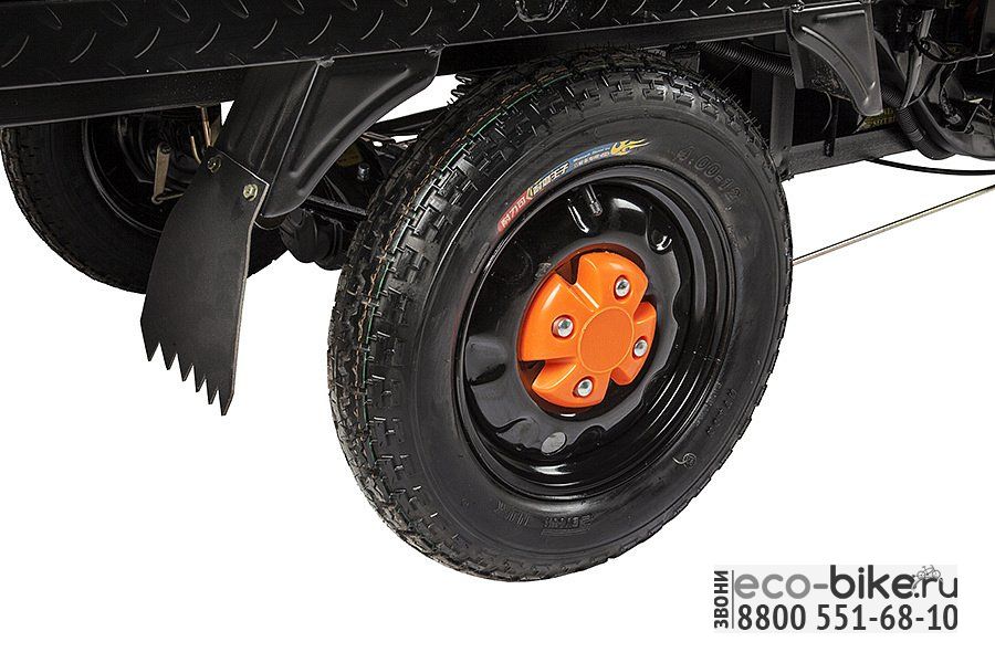- оснащен полностью герметичным тяговым бесщеточным двигателем 1200 ваттным мотором, которые разгоняет электрическую тележку до 25 км/ч;